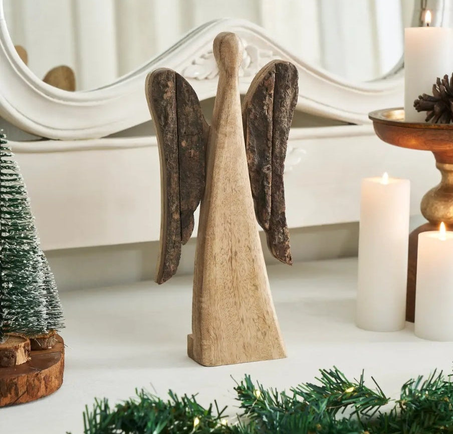 Add a striking and serene presence to your holiday decor. The smooth finish and distressed appearance gives a look of vintage charm that fits perfectly in farmhouse or primitive decor. This Angel measures 12.25 inches tall.